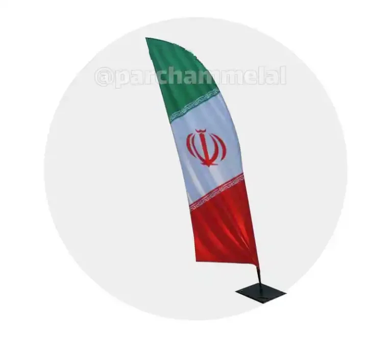 پرچم ساحلی 2 متری مدل بادبانی، تولید شده با پارچه ساتن کرهای 9 کیلویی مرغوب، میله فلزی آبکاری شده و زد زنگ، و پایه گرانولی 13 کیلویی بدون ریزش، با کیفیت عالی و تضمینی، ارسال به سراسر کشور